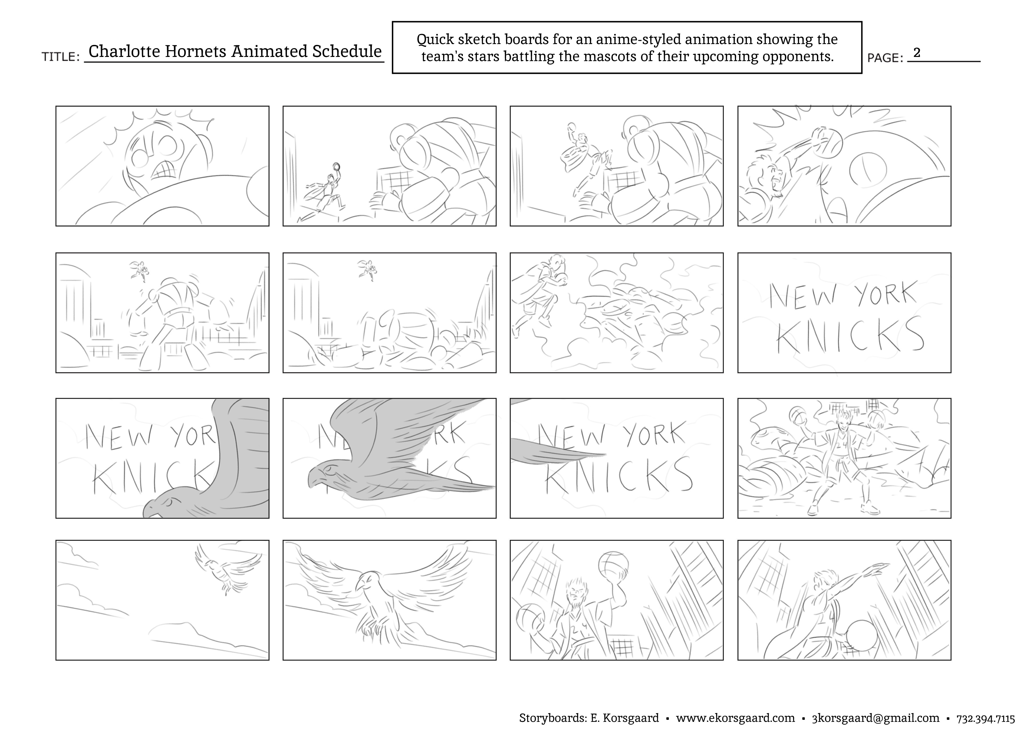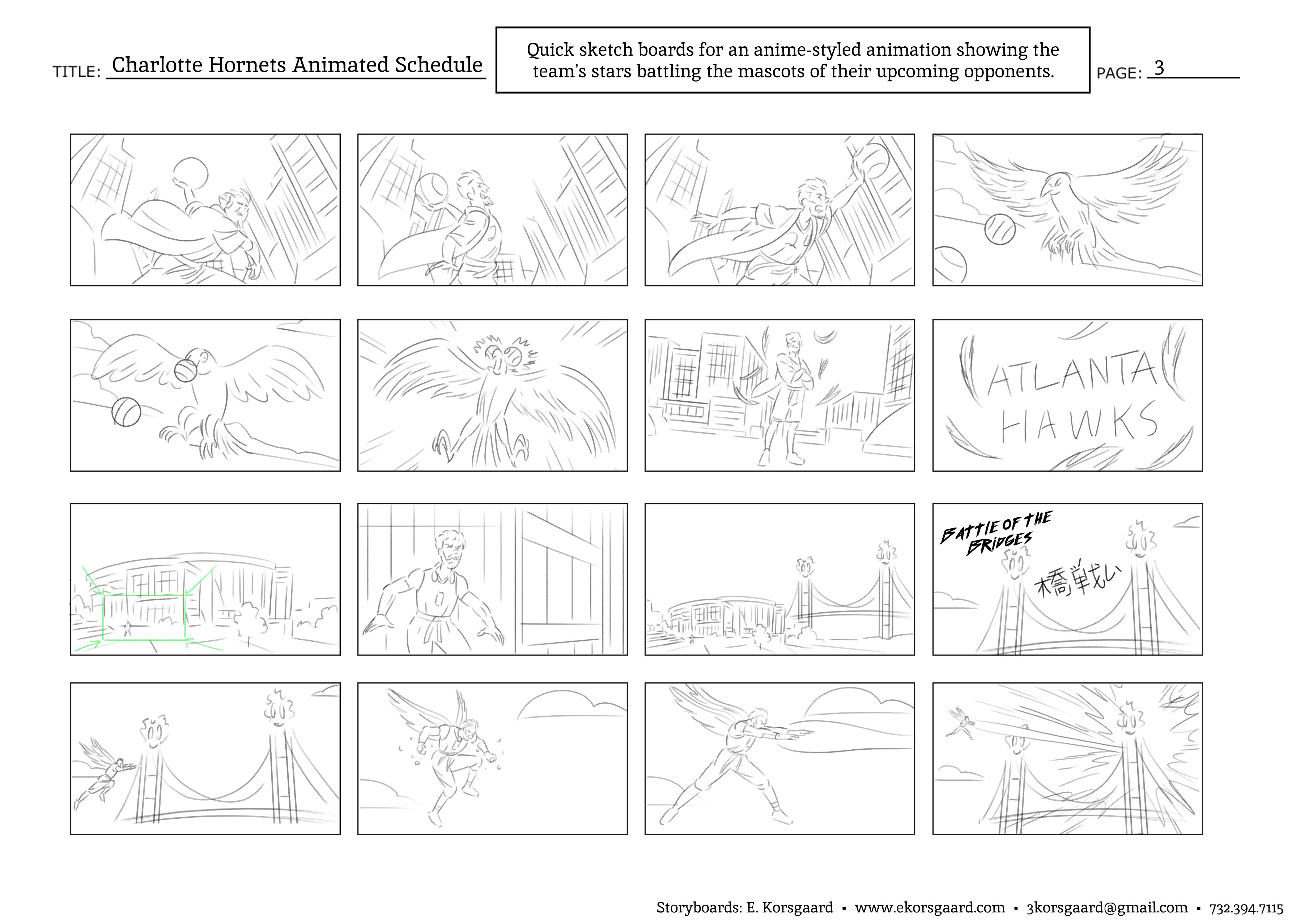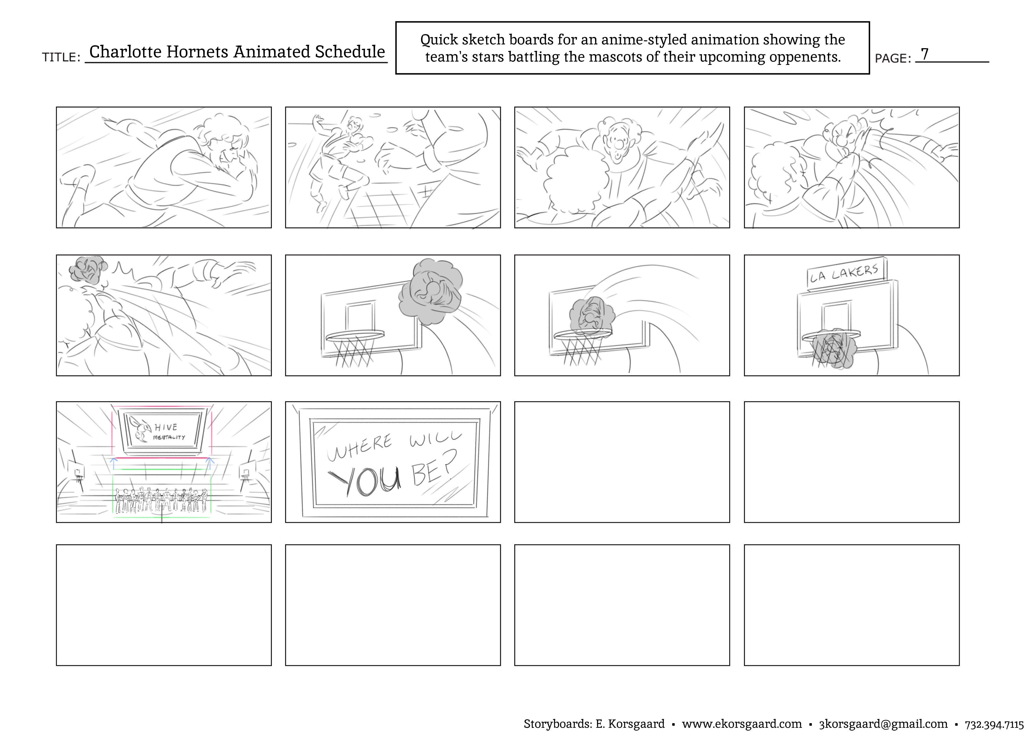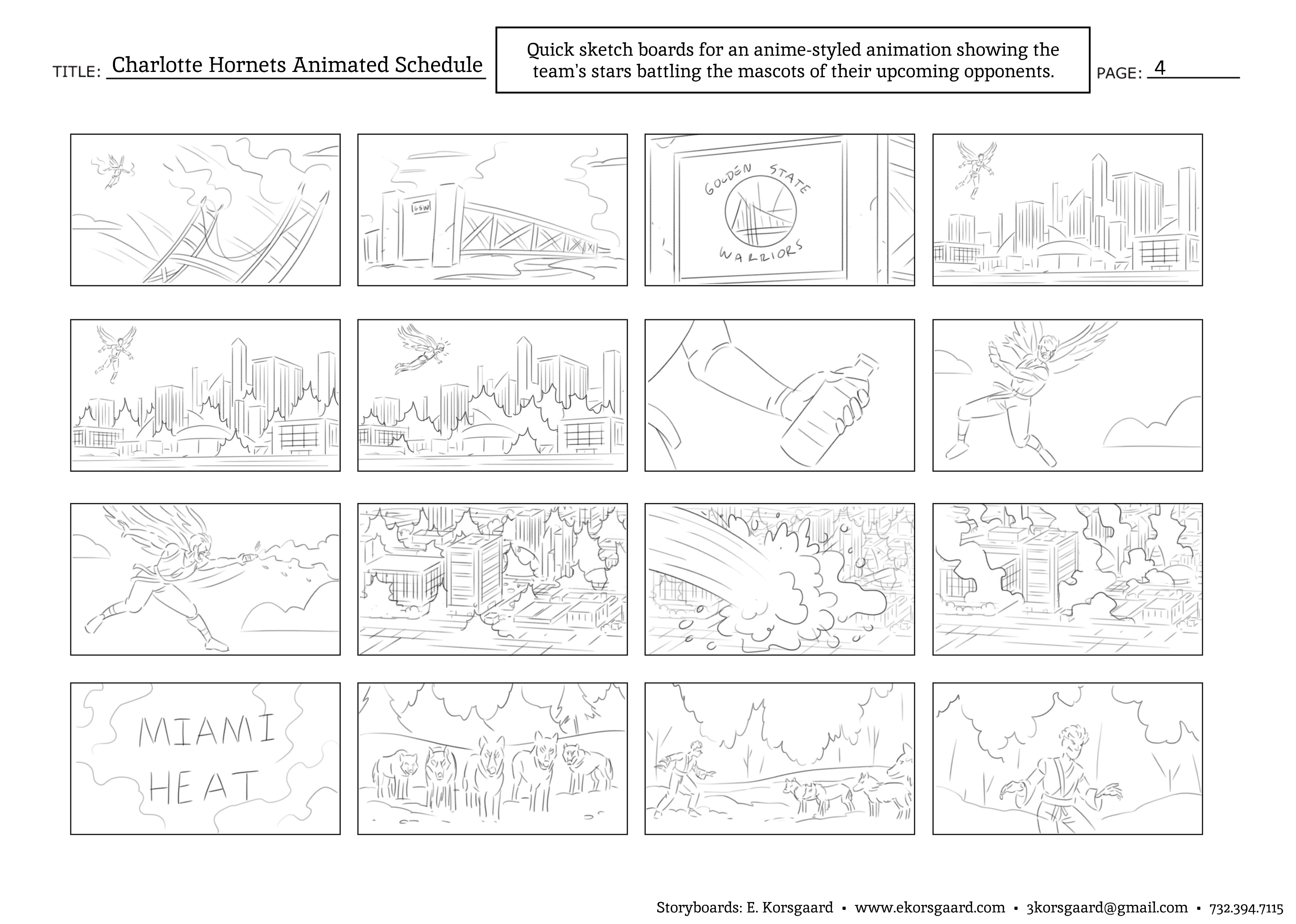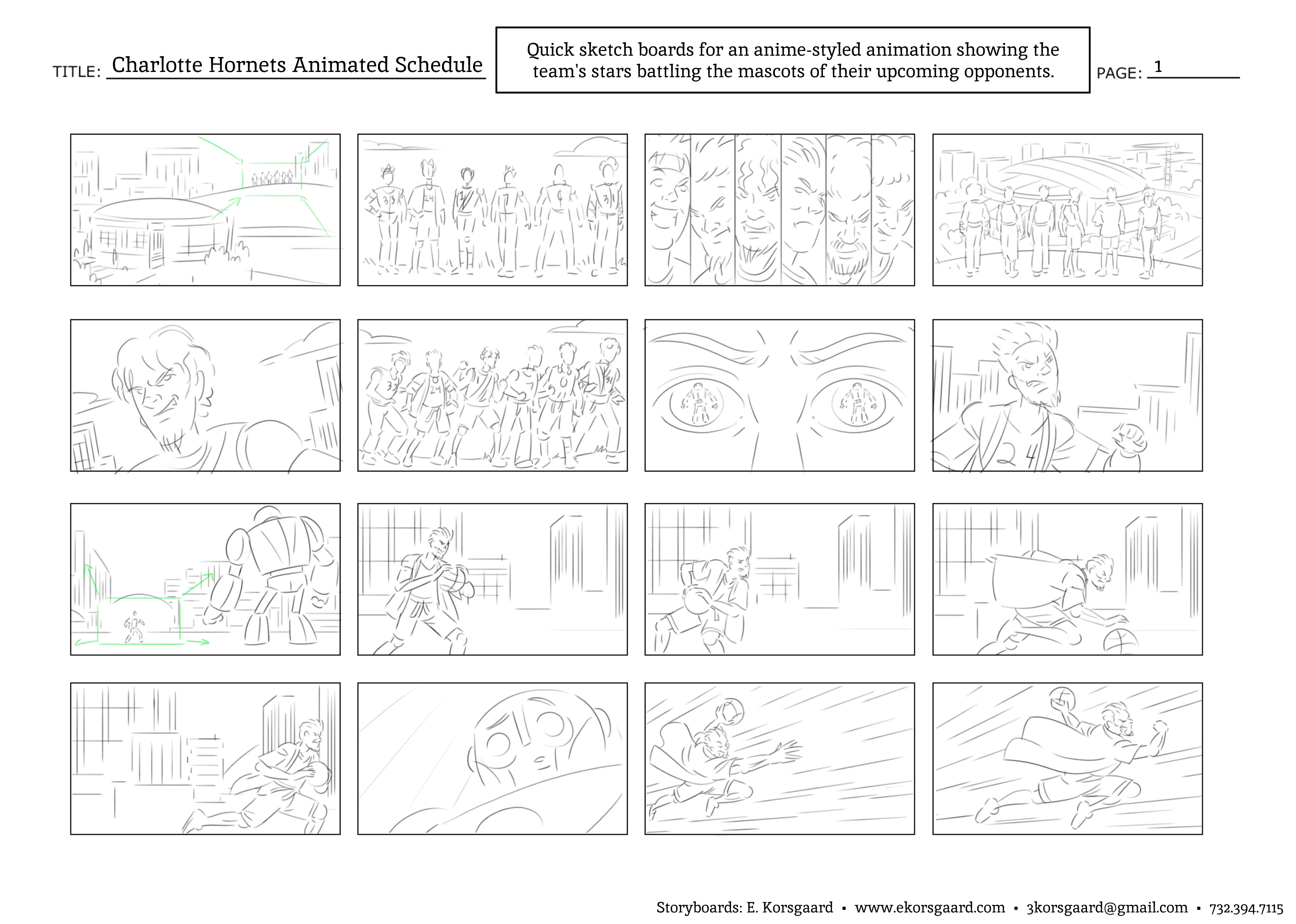 Storyboards for live action and advertising projects. Clients include Netflix, the Valley Forge Tourist Board, WeWork and the Charlotte Hornets.